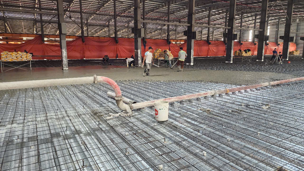 Đổ bê tông sàn decking công trình mở rộng và cải tạo xưởng KCN Vsip 2.